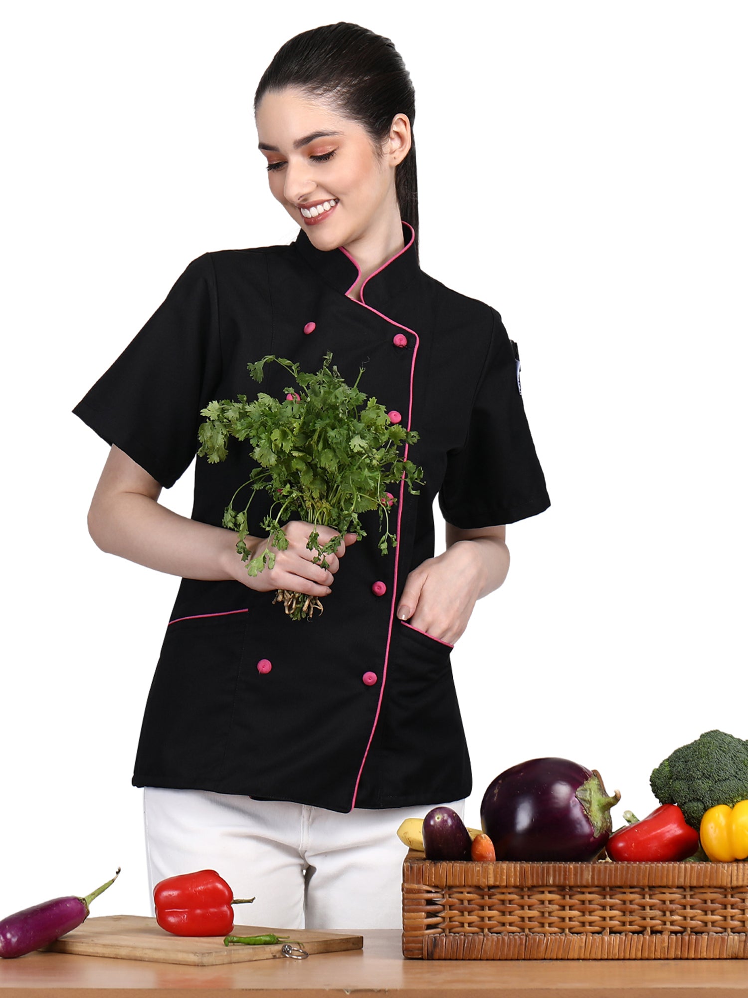 Long Sleeves Men women Kitchen Chef jacket coat Uniform costume for Food service Caterers and Culinary professional – Black Pink - XS